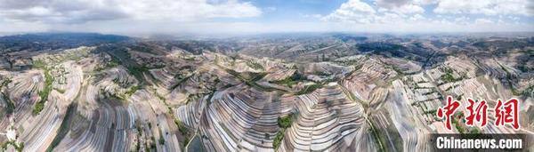 5月14日,甘肅省定西市安定區(qū)梯田廣袤,如同“五線譜”纏繞在黃土高原。定西市位于黃土高原丘陵溝壑地區(qū),是一個(gè)生態(tài)環(huán)境十分脆弱的地方。多年來,定西人堅(jiān)持在生態(tài)文明和梯田建設(shè)上下功夫,總結(jié)并開發(fā)多種治理模式,在生態(tài)得以改善的同時(shí),還產(chǎn)生經(jīng)濟(jì)效益。