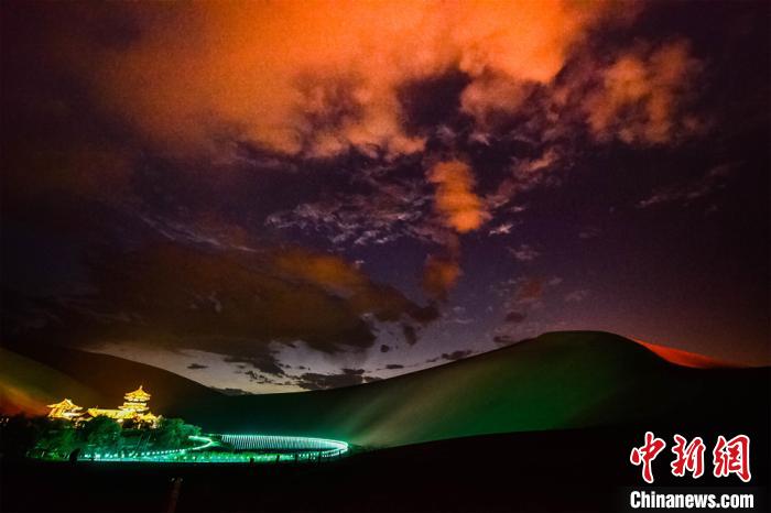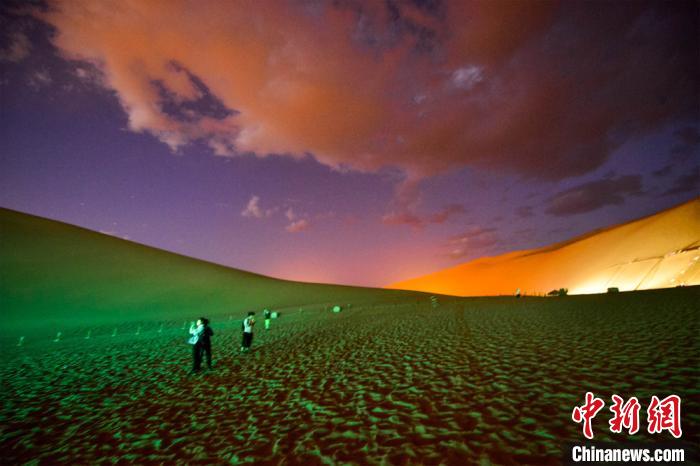 圖為游客觀賞大漠夜景?!⊥醣筱y 攝