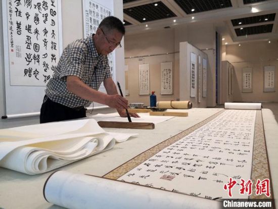 中新網(wǎng)蘭州9月22日電 (馮志軍 高瑩 閆姣)30多年前,因參與發(fā)現(xiàn)位于甘肅河西走廊大漠戈壁“深閨”中的懸泉置遺址,現(xiàn)場(chǎng)出土大量珍貴的簡(jiǎn)牘,令現(xiàn)任敦煌市文化館美術(shù)室主任、敦煌市美術(shù)館展覽部主任朱群魂?duì)繅?mèng)繞了很多年。而此后,當(dāng)時(shí)出土簡(jiǎn)牘上的漢簡(jiǎn)書(shū)體,成為他研究、傳承和弘揚(yáng)的事業(yè)。
