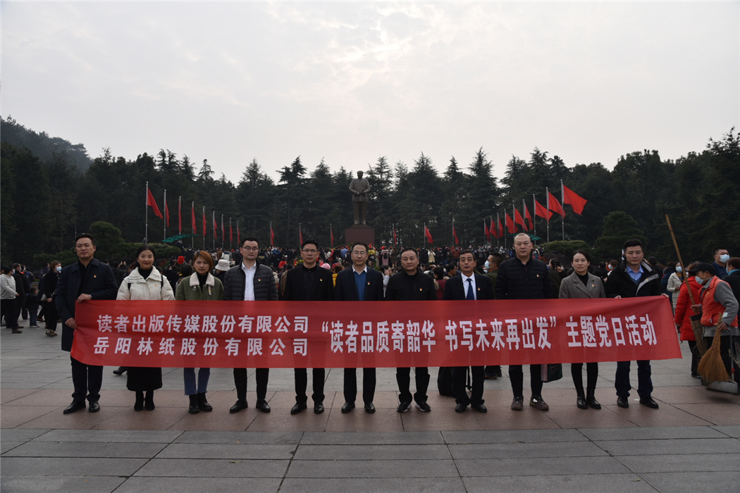 12月26日,是毛澤東主席誕辰127周年。讀者出版?zhèn)髅焦煞萦邢薰九c岳陽(yáng)林紙股份有限公司在湖南韶山黨性教育基地,開展了“讀者品質(zhì)寄韶華,書寫未來(lái)再出發(fā)”聯(lián)合主題黨日活動(dòng),并現(xiàn)場(chǎng)聆聽(tīng)黨課。