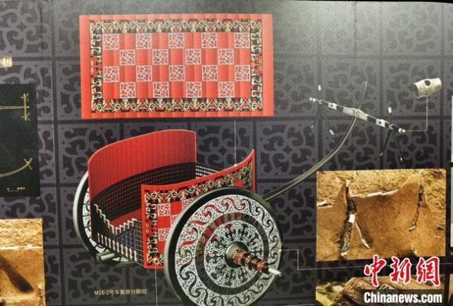 位于甘肅天水市張家川回族自治縣的馬家塬西戎墓葬,首次發(fā)現(xiàn)保存完好的華麗戰(zhàn)國車乘。圖為復(fù)原馬車效果圖?!●T志軍 攝