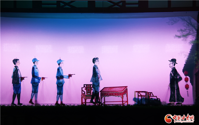 《隴原第一槍》在傳承道情皮影文化的同時(shí),也進(jìn)行了改進(jìn)和創(chuàng)新。為了增強(qiáng)觀演效果,該劇把傳統(tǒng)的影窗、影件進(jìn)行比例放大,影人由傳統(tǒng)的三簽改為五簽,高度由傳統(tǒng)的約30厘米改為80厘米。唱腔設(shè)計(jì)和樂隊(duì)伴奏也創(chuàng)新融入合唱性幫腔演唱,擴(kuò)大樂隊(duì)伴奏規(guī)模,增加了二胡、笙和打擊樂的多聲部配器,讓聽覺更為飽滿。同時(shí),舞美融入聲、光、電等科技元素,增加了實(shí)景襯托設(shè)計(jì)。