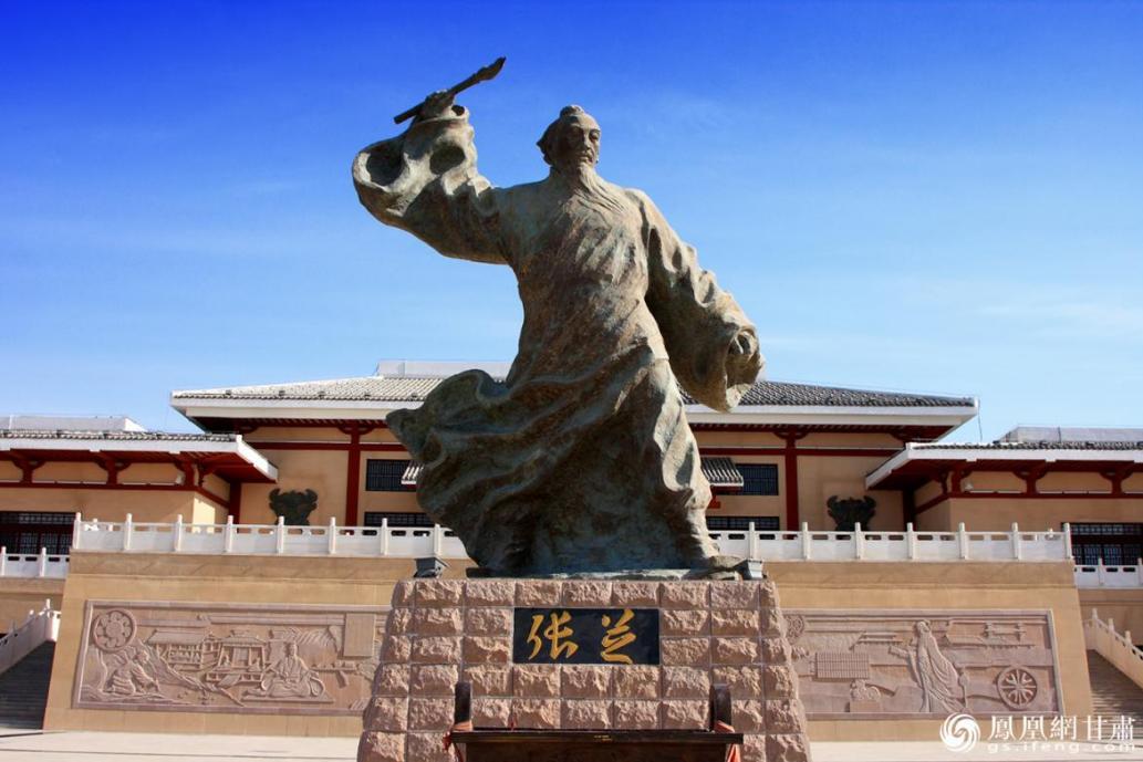 張芝雕塑。揮舞著如椽大筆,頓覺滿紙風(fēng)動(dòng),氣壯山河。瓜州縣委宣傳部供圖