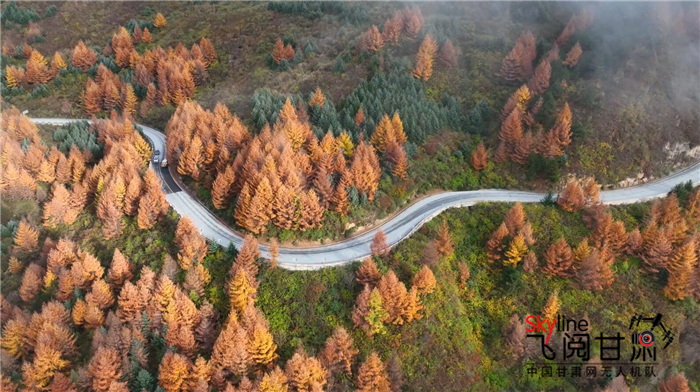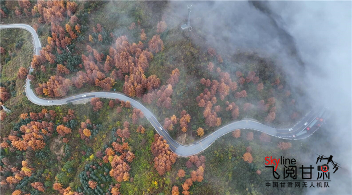 “一年好景君須記,最是橙黃橘綠時(shí)。”在初冬遇見深秋。隴南文縣的高樓山依然色彩斑斕,驅(qū)車沿著蜿蜒山路前行,目之所及皆是秋日童話世界。從空中俯瞰,公路更是在斑斕的林海中延伸,在薄霧籠罩中遇見遠(yuǎn)方。