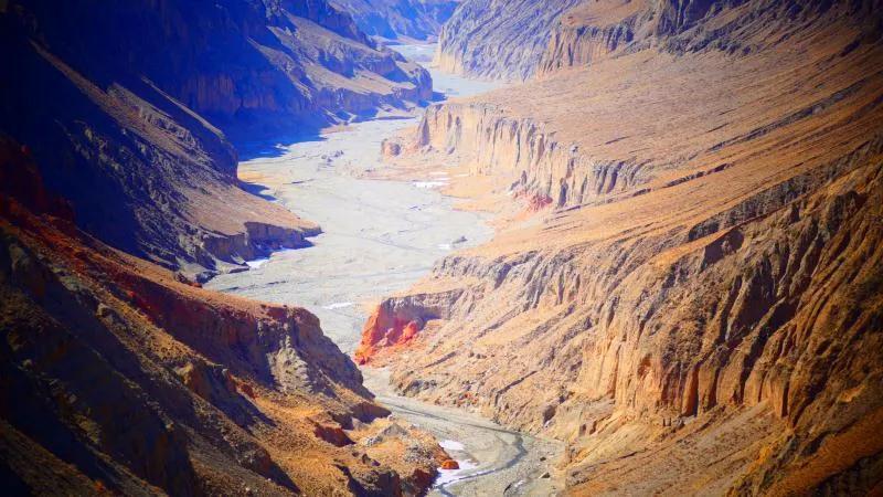 在漫漫歷史長河中,馬營河大峽谷經(jīng)過風(fēng)吹日曬,在祁連山下形成了陡峭突兀的深溝險坡。大峽谷內(nèi),清澈見底的河水順著蜿蜒小道而下,令人嘆為觀止。馬營河大峽谷集雄、奇、險、秀為一體,峽谷底部清溪流淌,峽谷盡頭雪山聳立,平坦的崖頂云霧迷蒙,整個畫面壯觀雄偉,可以說,馬營河大峽谷可以與美國科羅拉多大峽谷相媲美。