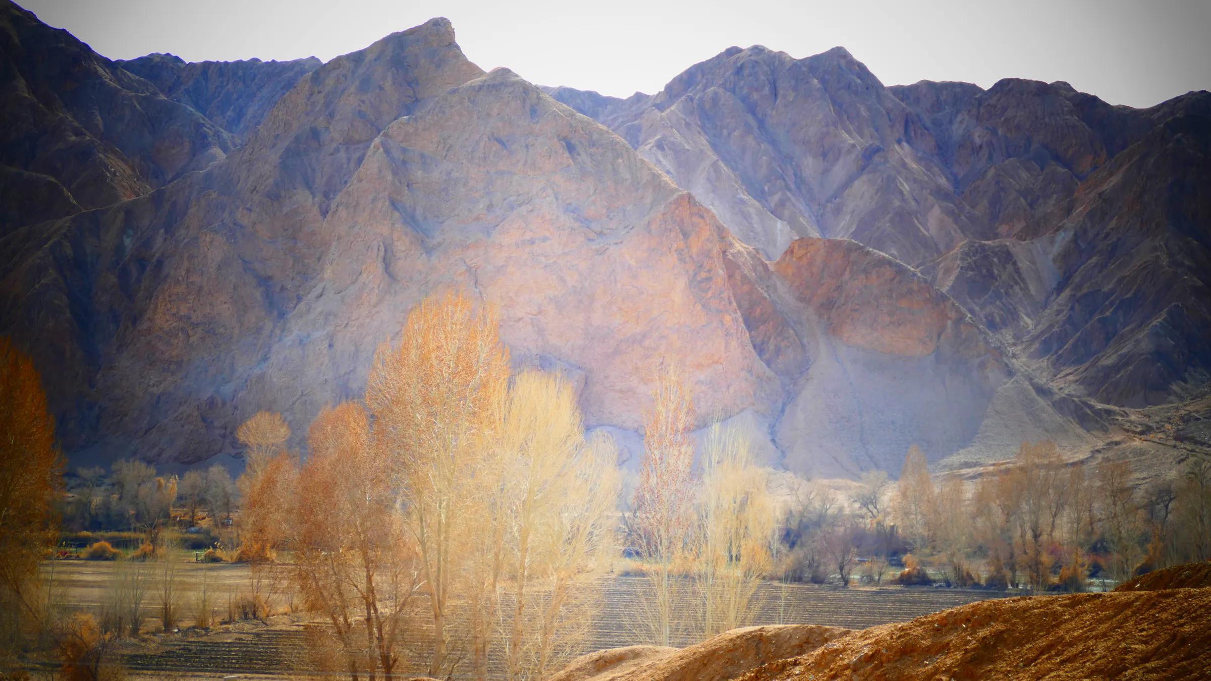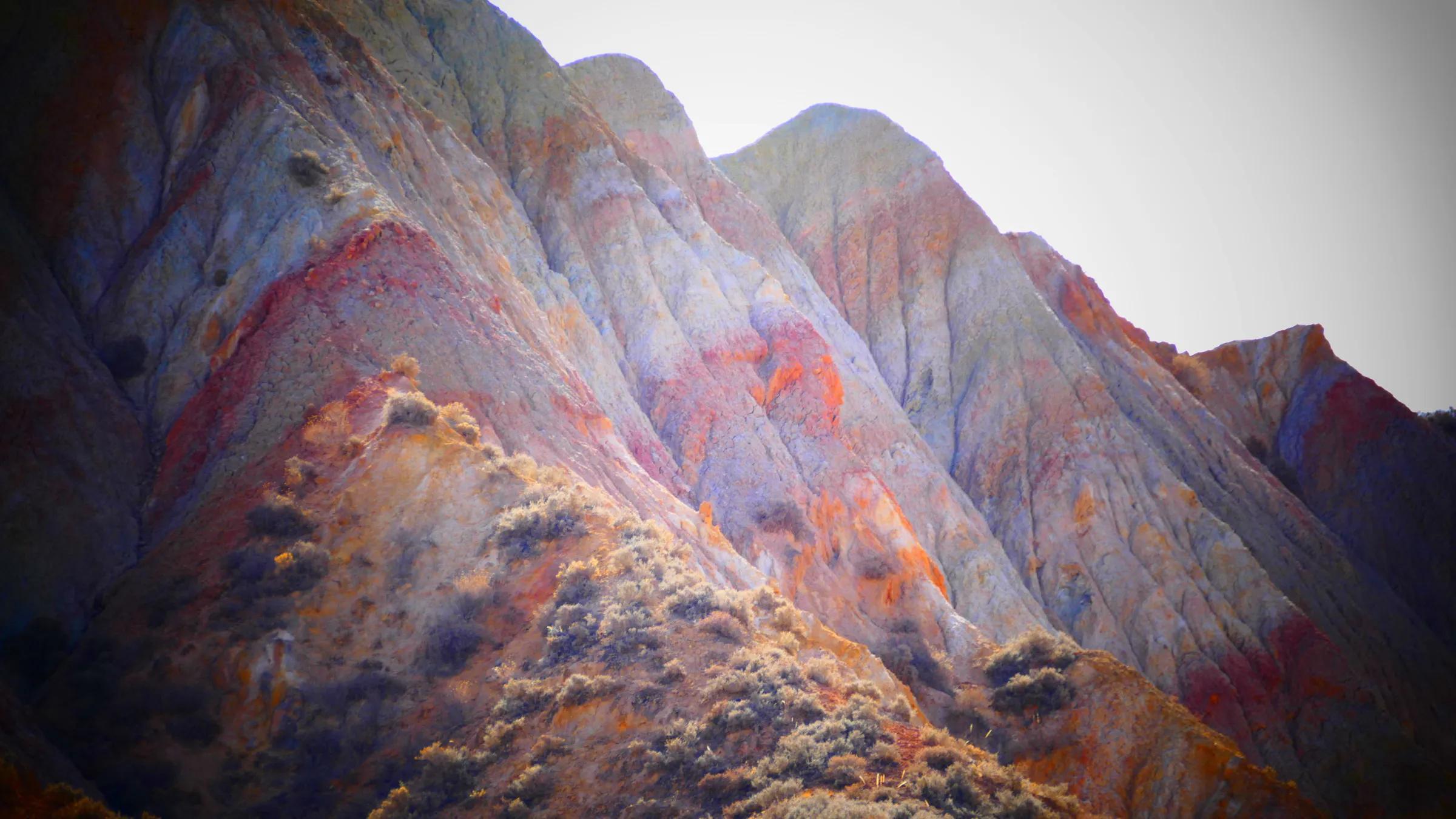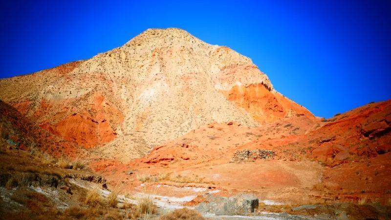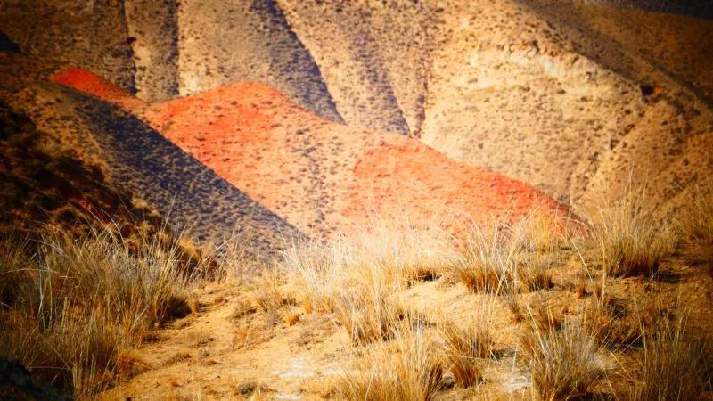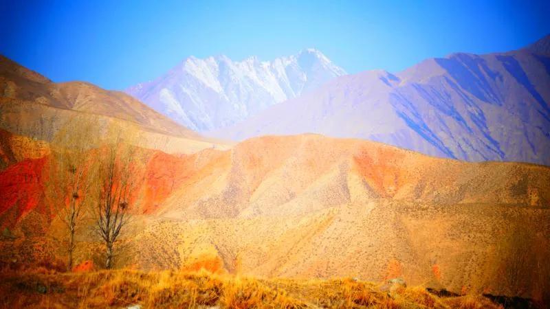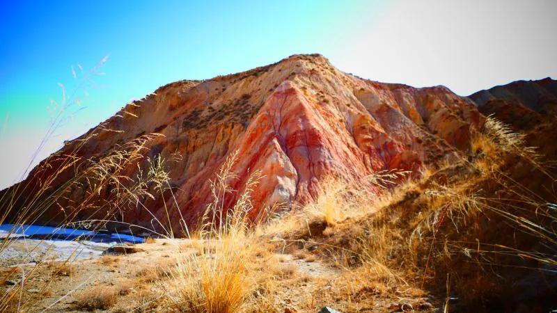 從馬營河大峽谷南端再向南一眼望去就是祁連雪山,沿著河道通過高臺縣新壩鎮(zhèn)的紅沙河村,向東南走進祁連山脈可見一片五顏六色的奇觀,又一個丹霞地貌在祁連山展現(xiàn),可稱高臺“小泉丹霞〞。據(jù)說這個“丹霞”還沒有媒體“曝過光〞。
