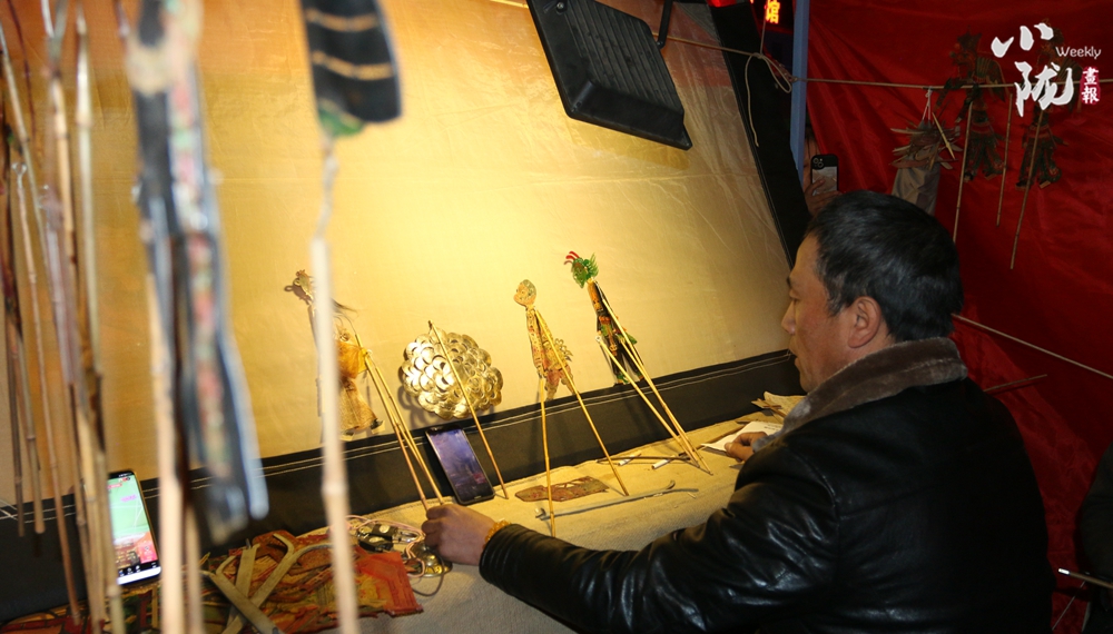 一張幕布、兩盞白熾燈、四五老藝人、七八件簡(jiǎn)單樂(lè)器,藝人在白色幕布后面,一邊用手操縱戲曲剪紙人物,一邊用本地流行曲調(diào)唱述故事,同時(shí)配以器樂(lè)以增加演戲氣氛。