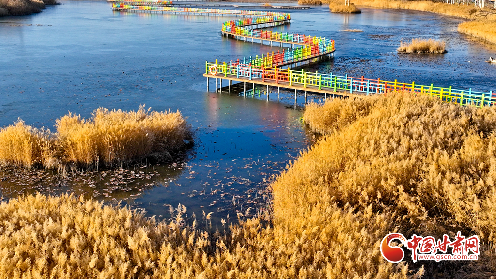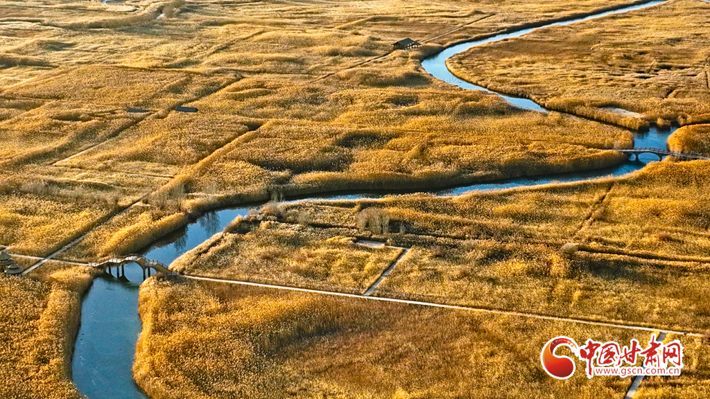 初冬時節(jié),張掖黑河濕地國家級自然保護區(qū)的蘆葦、蒲草等植物在秋風(fēng)、冬霜的吹拂下都變成了金黃色,密密的蘆花舞動著裊娜的身姿,倩影婆娑,蘆葦叢里鳥鳴啾啾,整個濕地成為了一片金色的童話世界,讓人產(chǎn)生無限遐思。