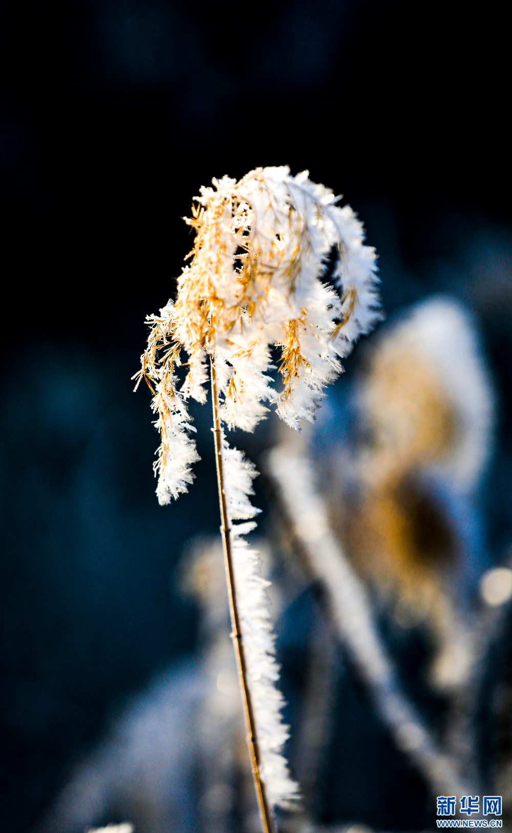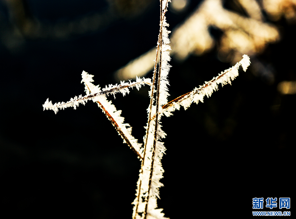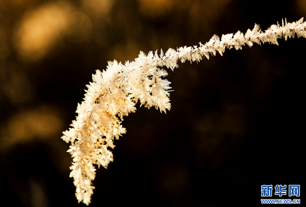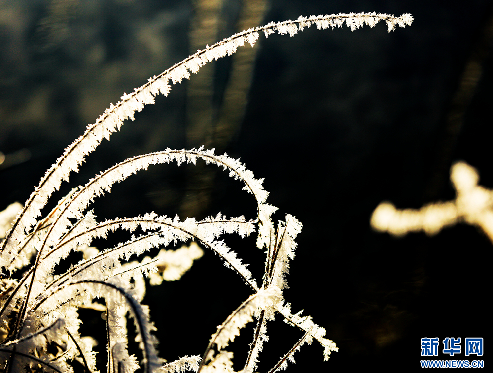 冬日里,甘肅省張掖國家濕地公園蘆葦叢中的蘆花掛滿冰花,晶瑩剔透,美不勝收。新華網(wǎng)發(fā)(陳禮 攝)