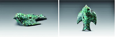 陜西省清澗縣寨溝商代遺址出土的鑲綠松石銅燕 中國(guó)社會(huì)科學(xué)院考古研究所供圖