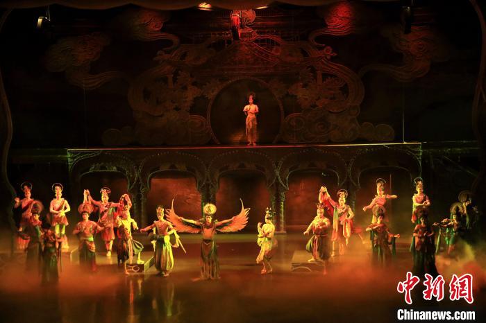 資料圖:2023年10月9日晚,演員在大型洞窟式沉浸體驗(yàn)劇《樂動(dòng)敦煌》中表演。張曉亮 攝