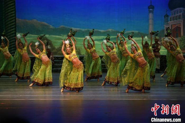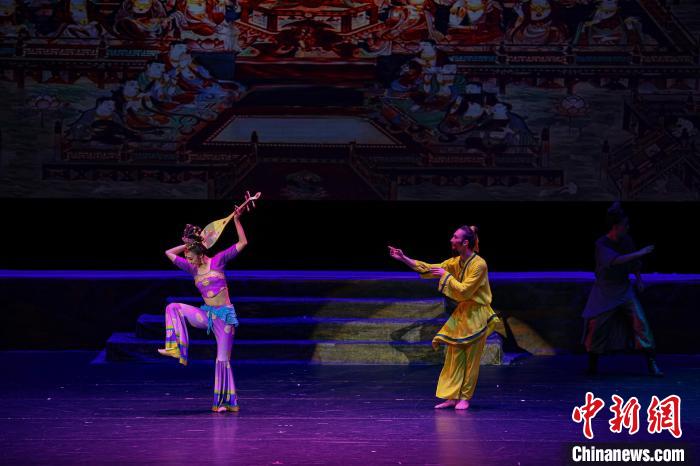 2023年4月17日晚,中國(guó)經(jīng)典舞劇《絲路花雨》在澳門百老匯劇場(chǎng)演出。(資料圖)甘肅演藝集團(tuán)供圖
