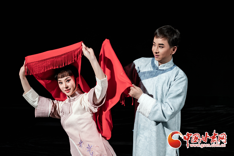 值得一提的是,演員的舞臺(tái)表演融入了“地游子步”“側(cè)身?yè)u晃”等隴劇特有的身段和表演樣式,彰顯出濃濃的隴劇藝術(shù)特色。