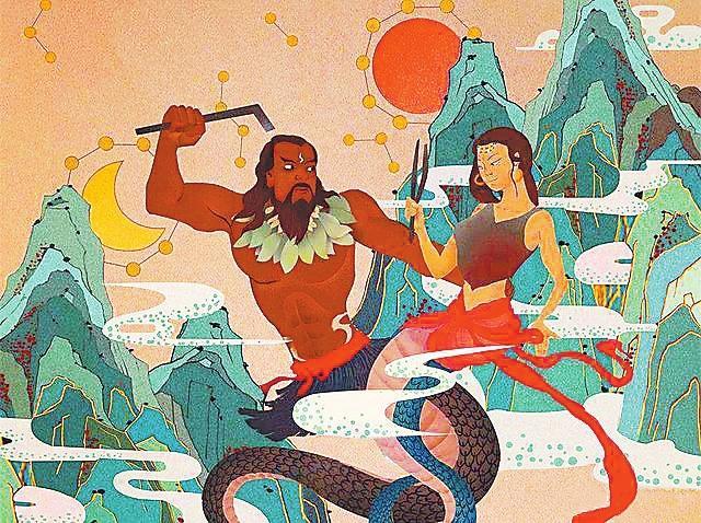 這就清楚地表明,伏羲、女?huà)z夫婦開(kāi)天地、參萬(wàn)物、協(xié)陰陽(yáng)、定四時(shí)、通山川,使混沌無(wú)序和荒涼寂靜的世界有了運(yùn)行秩序,無(wú)疑,伏羲、女?huà)z就是中華民族開(kāi)天辟地的創(chuàng)世英雄。