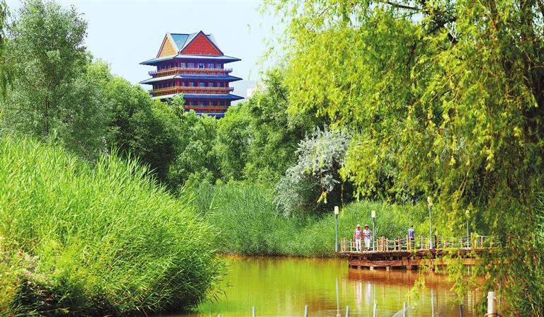 隨著黃河水位的變動,濕地四季景色各異。亭臺樓閣、小橋流水,漫步其間讓市民和游客領(lǐng)略到黃河濕地的獨特風(fēng)貌。