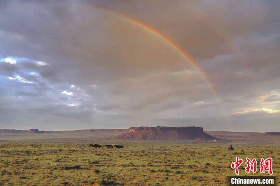 彩虹下的“草原敦煌”——阿爾寨石窟。張政國 攝
