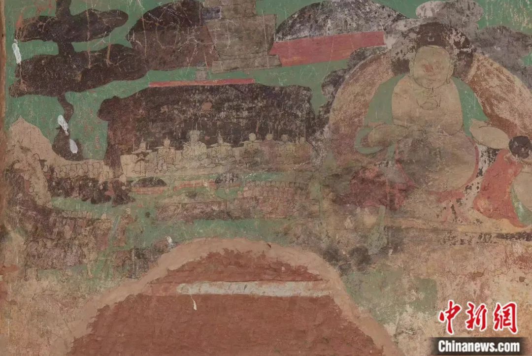 阿爾寨石窟第33窟右壁壁畫,佛傳故事圖。鄂托克旗官方供圖