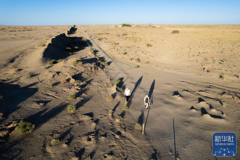 ↑這是張吉全和聞春瑜夫婦工作生活的漢長城文物保護(hù)管理用房(7月16日攝,無人機(jī)照片)。