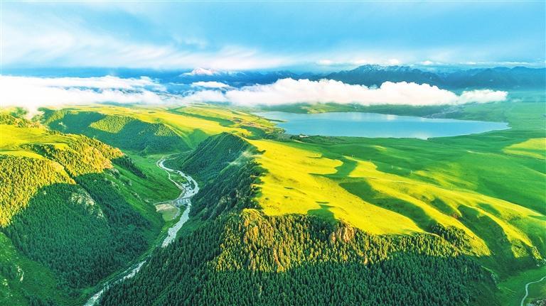白雪皚皚的祁連山下,一眼望不到邊的大片牧草青翠碧綠,色彩斑斕的野花競(jìng)相開(kāi)放,擁有百萬(wàn)畝草原的山丹馬場(chǎng)如巨幅彩色畫(huà)卷徐徐展開(kāi)。