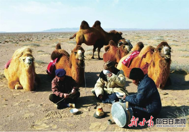 民勤的駝戶、駝隊、駝商歷史悠久,在西北久負(fù)盛名。2011年3月,民勤駱駝客被確定為甘肅省第三批省級非遺項目,屬民俗類。2017年,民勤駝隊傳說、駝夫號子也被列入第四批省非遺名錄,由此形成了在甘肅省乃至全國獨具特色、自成一體的民勤駱駝客文化。