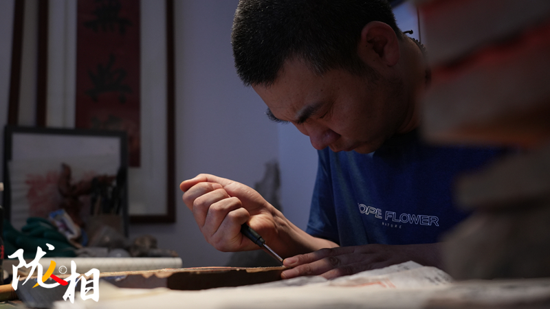 已過不惑之年的李安樂,是靜寧縣一名普通美術(shù)教師,在技藝的精巧與熱愛的加持下,獲得了市級傳統(tǒng)雕版印刷非遺傳承人稱號。