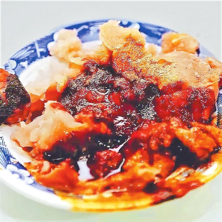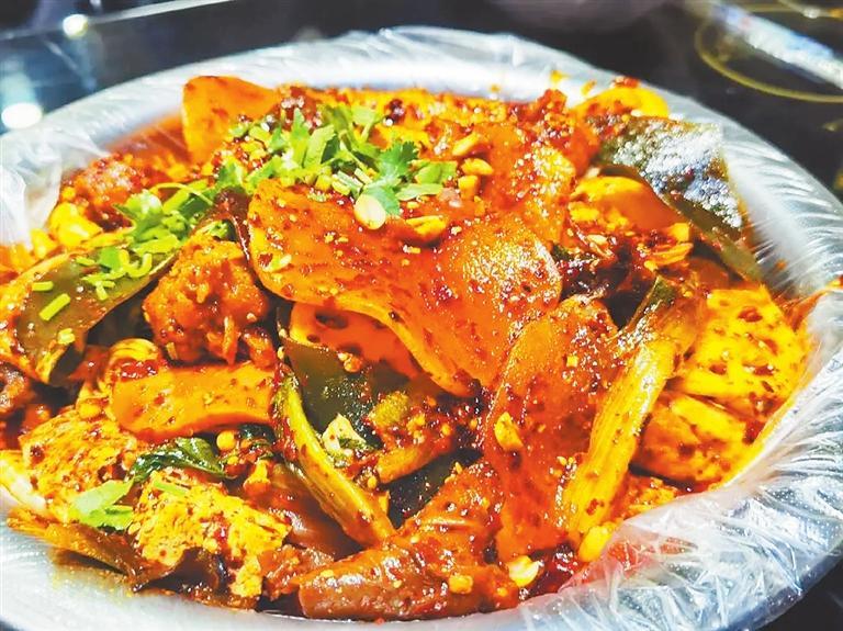 “呱呱”需要在一片赤紅色的辣中翻翻撿撿,尋尋覓覓,尋到一塊兒裹滿(mǎn)辣椒且大小適中的碎塊,香氣就這么吃到肚子里了。