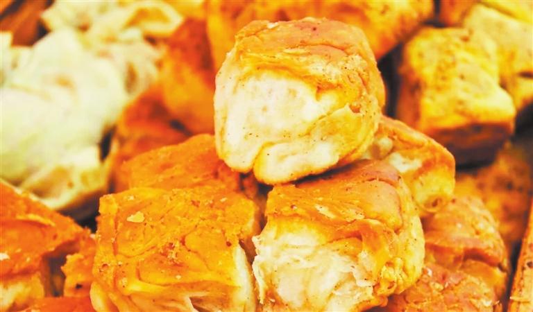 況且,一碗手搟粉里,如果啃上一個(gè)底和邊烤得脆脆的豬油盒子,手搟粉麻辣鮮香的料汁可以為豬油盒子的味道錦上添花,同時(shí)脆的口感又能與充滿(mǎn)韌性的手搟粉相得益彰,珠聯(lián)璧合。