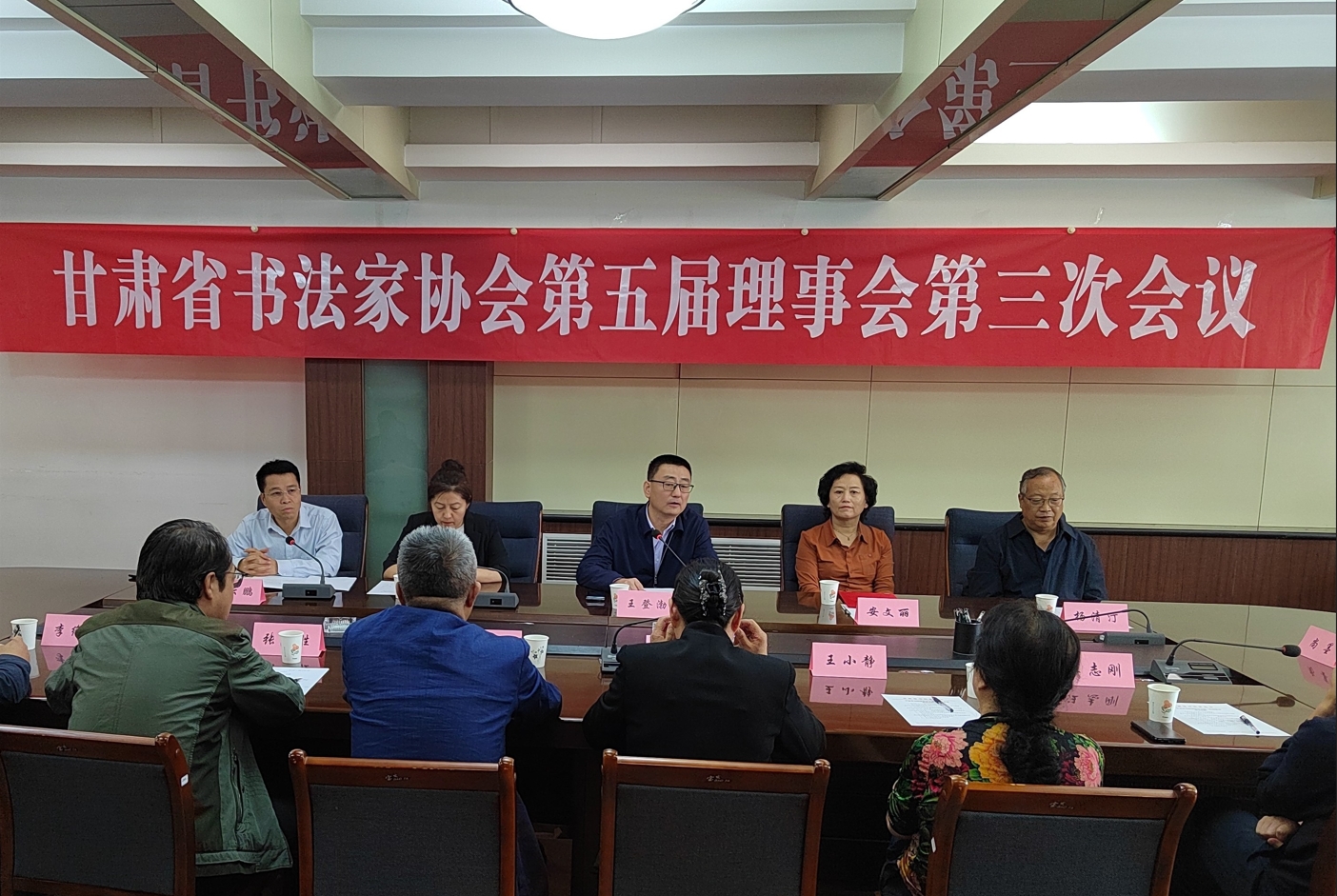 2024年9月13日下午,甘肅省書(shū)法家協(xié)會(huì)第五屆理事會(huì)第三次會(huì)議在蘭州召開(kāi)。省文聯(lián)黨組書(shū)記、主席王登渤出席會(huì)議并講話,省文聯(lián)人事處處長(zhǎng)楊東英、省書(shū)協(xié)五屆理事會(huì)理事參會(huì)。會(huì)議由省書(shū)協(xié)常務(wù)副主席劉云鵬主持。