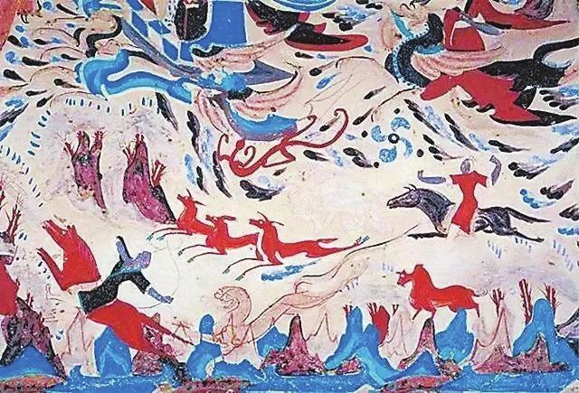 在莫高窟第249窟壁畫中有一幅“行獵圖”:畫面上都是些體型巨大的動(dòng)物,有體態(tài)矯健的猛虎、疾馳俊逸的鹿群、整裝待發(fā)的獅子等,有在奔馳的駿馬上拈弓搭箭窮追不舍的獵人,還有在飛奔的駿馬上淡定轉(zhuǎn)身從容射虎的獵人。整個(gè)畫面既緊張又美好,使人不由得對(duì)畫師精湛的技藝心悅誠(chéng)服。唐代詩(shī)人王維在詩(shī)作《觀獵》中寫道:“風(fēng)勁角弓鳴,將軍獵渭城。草枯鷹眼疾,雪盡馬蹄輕。忽過(guò)新豐市,還歸細(xì)柳營(yíng)。回看射雕處,千里暮云平。”意思是說(shuō)將軍的獵騎,飛馳在渭城的近郊。風(fēng)中傳來(lái)呼嘯的弦聲。已枯的野草,擋不住尖銳敏捷的鷹眼,積雪后飛馳的駿馬馬蹄會(huì)愈加輕盈。據(jù)文獻(xiàn)記載,唐宋時(shí)期人們打獵時(shí)多有一種“西北望,射天狼”的豪情!在莫高窟第85窟壁畫中還有一幅“行獵圖”就形象地反映了唐人狩獵的情景:畫面上的四個(gè)健碩獵人正在整裝出獵,他們著裝統(tǒng)一:頭戴幞頭,身穿缺胯衫,足蹬半腰靴。打獵的裝備也很不同:有人胳臂上架鷹、有人單手牽犬、有人持弓挎箭囊,甚至還有一人手持利斧。