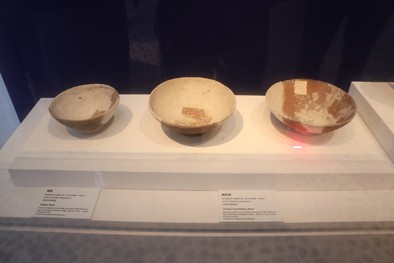 大地灣遺址出土的陶碗和圓足碗(距今約7800-7300年)。新華網發(fā)(郭林玉 攝)