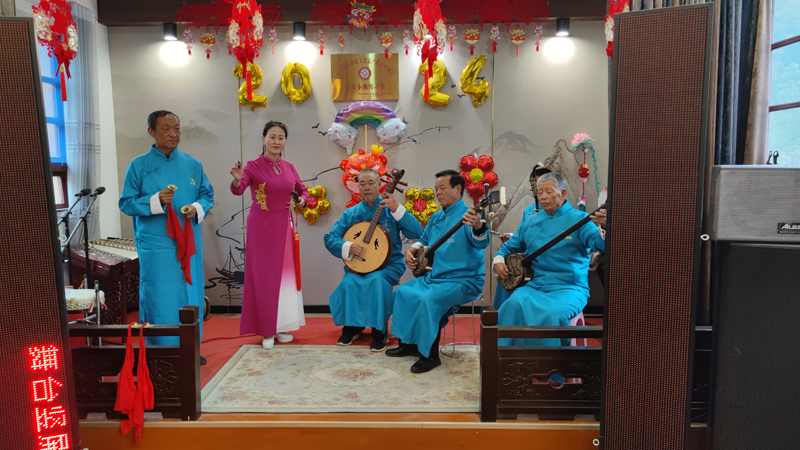 秦安縣集賢村文化活動室內,集賢文藝劇社的社員們正在排練演唱新編秦安小曲。新華網發(fā)(郭林玉 攝)