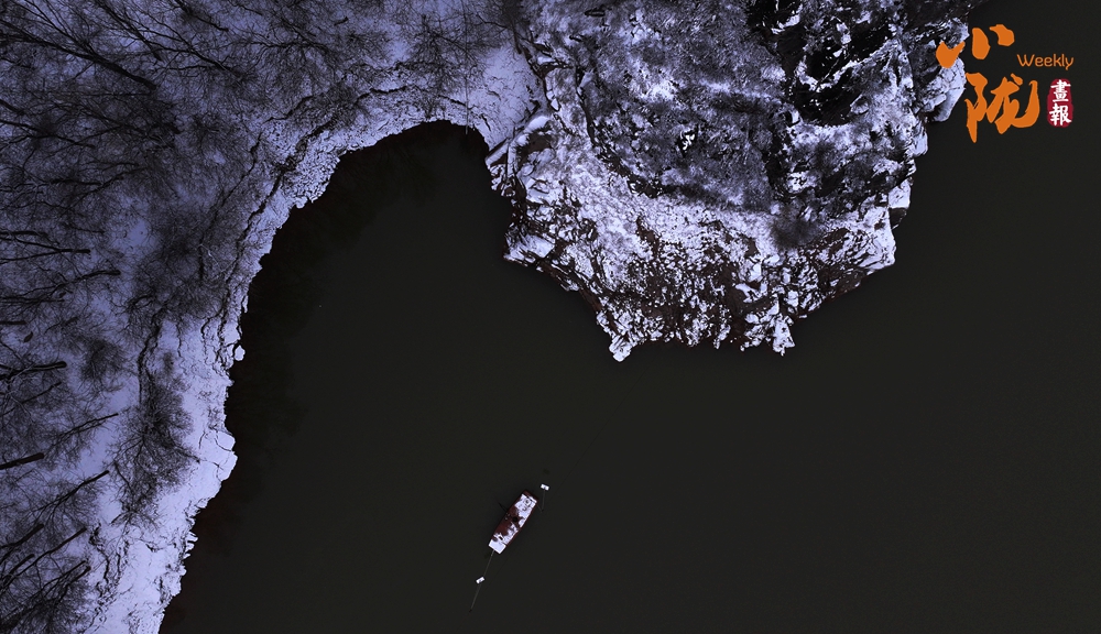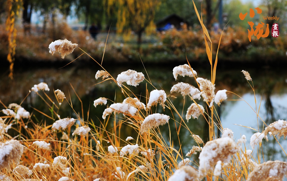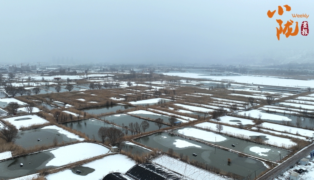 宛如江南水鄉(xiāng)的太極島在雪的映襯下,魚(yú)塘四周暗黃色的蘆葦枯敗中藏神韻,它們披著白雪,頂著寒風(fēng),為大地增添了一抹溫暖的色彩。