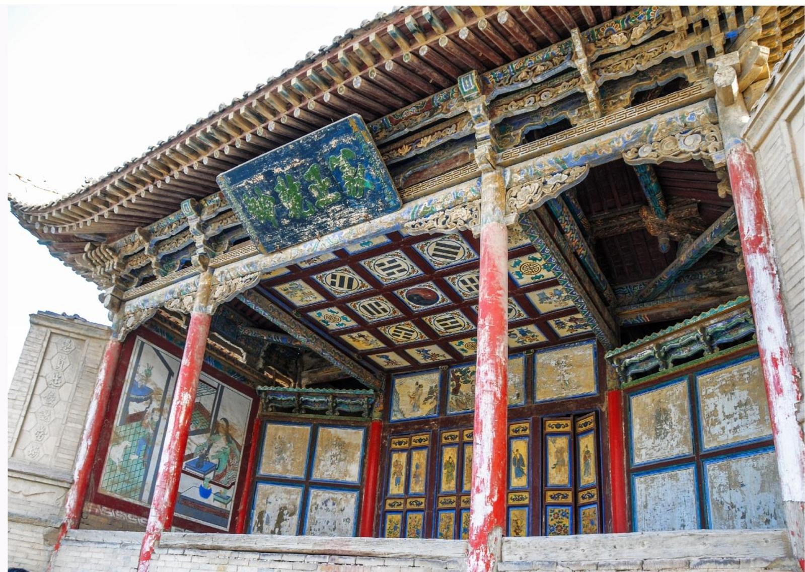關(guān)帝廟戲樓(現(xiàn)存),關(guān)帝廟又稱武安王廟。明朝中期修建,萬歷六年(公元1578年)奉命鎮(zhèn)守嘉峪關(guān)的酒泉人佘動(dòng)帶頭重修。乾隆五十七年(公元1792年),游擊將軍袋什衣主持重修,關(guān)帝廟戲樓是當(dāng)時(shí)守城官兵、城內(nèi)居民及過往商旅的娛樂場(chǎng)所。戲樓位于朝宗門斜對(duì)面,南閘門內(nèi)側(cè),關(guān)帝廟對(duì)面。它的形制是典型的中國傳統(tǒng)古典戲臺(tái)。關(guān)帝廟戲臺(tái)上就有一副意義深遠(yuǎn)的對(duì)聯(lián),在兩側(cè)的八字屏風(fēng)磚上刻有:“離合悲歡演往事,愚賢忠佞認(rèn)當(dāng)場(chǎng)。”