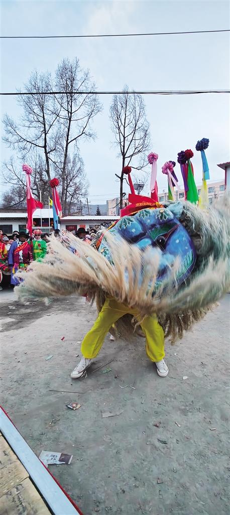 春節(jié)期間,人們擇吉日起社火,青毛獅子會在春官的贊詞里,在喧天的鼓號角里,在祈佑新愿的鄉(xiāng)民里威風(fēng)凜凜地走莊串社。