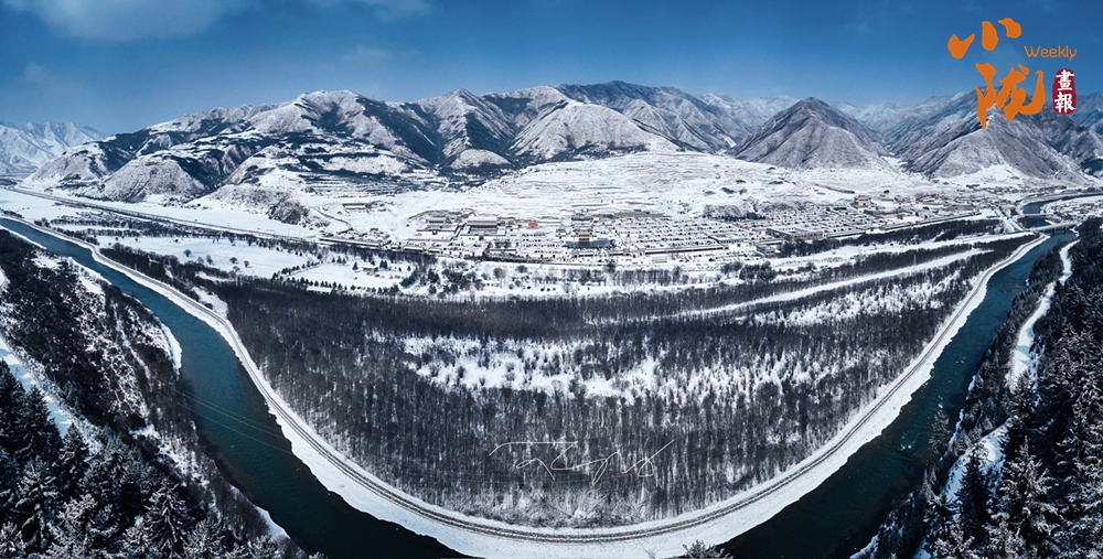 初春的碌曲縣,雪覆蓋了山林,覆蓋了藏寨,山川草場(chǎng)變成了純凈無暇的世界。