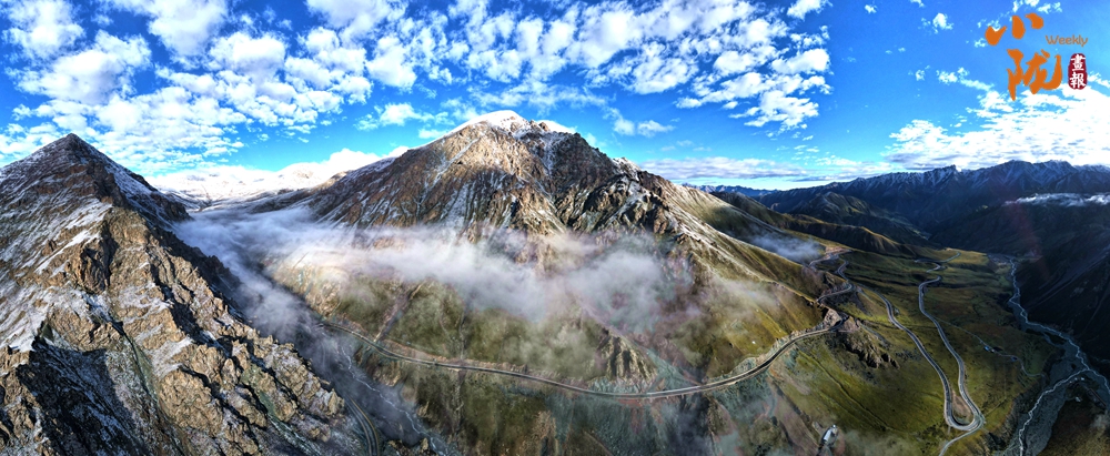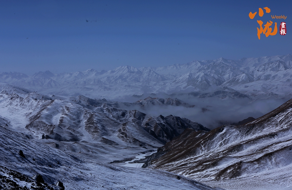 側(cè)目而視,近日一場(chǎng)降雪和夏日閑云相伴相依,近處的雪和遠(yuǎn)處的云相映成趣,共同把天空擦拭得深藍(lán)如鏡。這種“積雪長(zhǎng)留峰素裹,浮云飄忽去無(wú)邊”的夢(mèng)幻景色,會(huì)將你平日里積蓄在心頭的那些世俗凡塵濯洗得干干凈凈,有一種遠(yuǎn)離人世的幻覺(jué)。