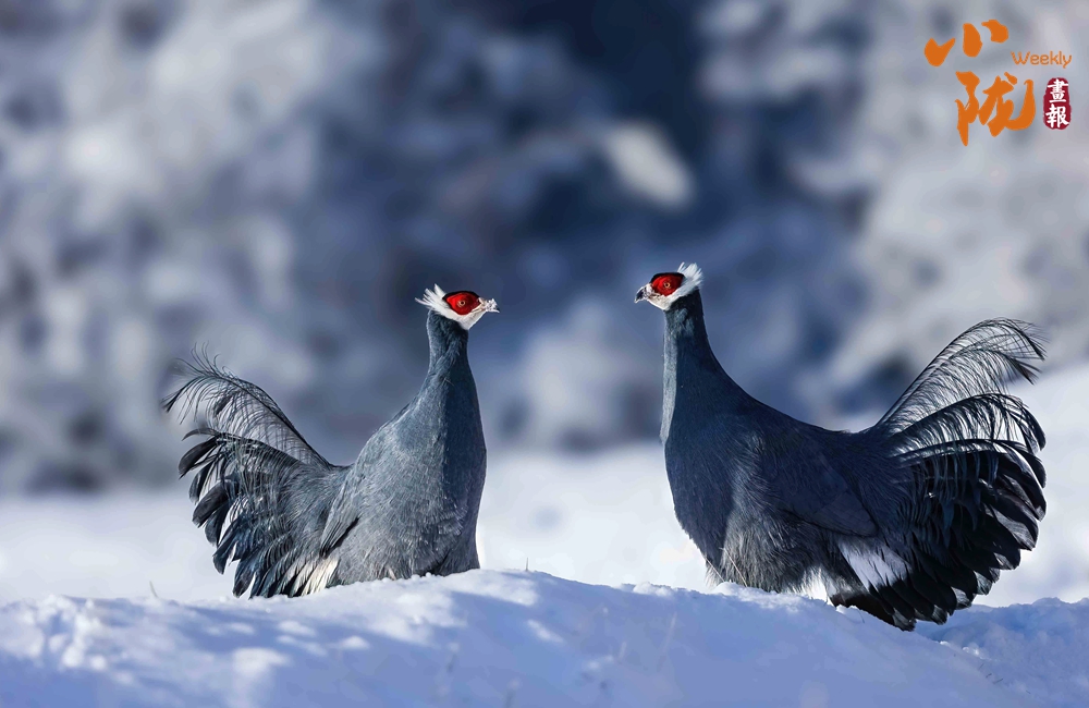 國家二級保護(hù)動物藏雪雞,又名“淡腹雪雞”或“貝母雞”。雌雄羽毛相似。嘴為黃色,腳為紅色。前額有一桔色臘膜,眼周裸皮為黃色。背部暗棕色,密布不規(guī)則的細(xì)斑。翼羽暗褐色,具有白色羽緣,初級飛羽為灰褐色,尾羽為深棕色,密布黑褐色點(diǎn)斑。胸、腹均有淡色與黑色相間的黑紋。