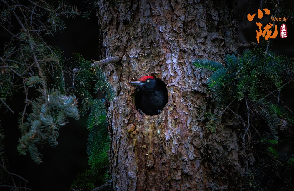 黑啄木鳥是一種大型的啄木鳥。它們的體長可達(dá)到45-50厘米,翼展可以達(dá)到65-75厘米,體重在250-350克之間。其外形非常有特色,它們的羽毛主要是黑色的,胸部和腹部有一些白色的斑點(diǎn),頭部有一個紅色的冠羽,這是它們的顯著特征之一。黑啄木鳥的喙非常強(qiáng)壯,呈灰黑色,非常適合在樹木上啄洞。