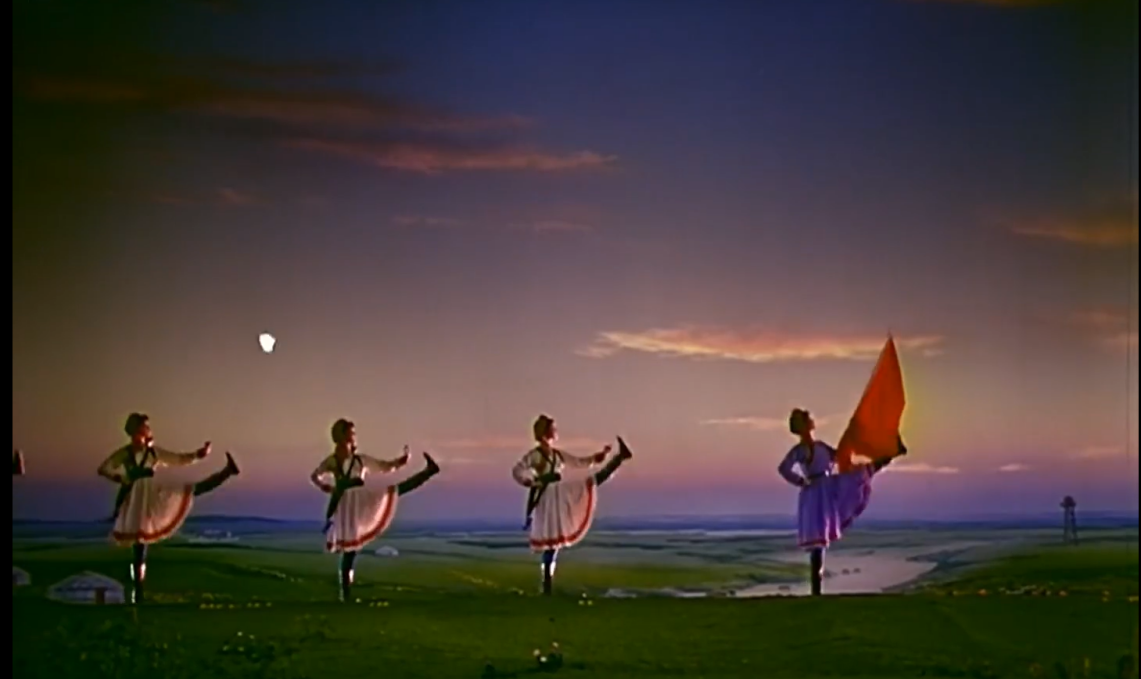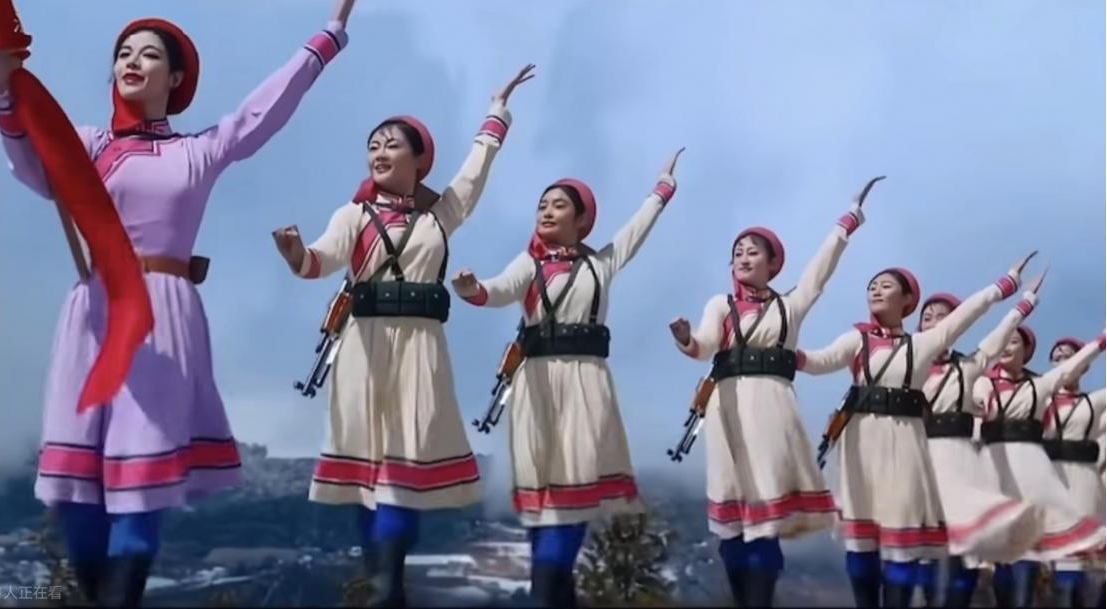 今天,當(dāng)我們談?wù)摗恫菰癖窌r(shí),很大程度上是在談?wù)摗栋倩幤G》中的《草原女民兵》。電影不僅保存了這部舞蹈,更在某種意義上重新定義了它。那些通過鏡頭精心構(gòu)建的畫面,那些經(jīng)過剪輯強(qiáng)化了的節(jié)奏,那些通過混音豐富了的聲音,共同塑造了后世對這部作品的集體認(rèn)知與審美想象。