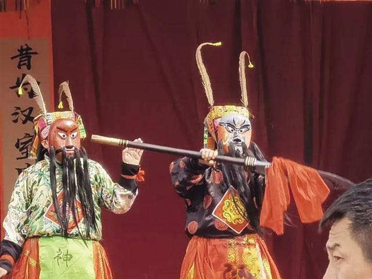 隴南市武都魚龍鄉(xiāng)陽山村高山戲又稱“演故事”“走過場”等,發(fā)源于隴南武都高山地區(qū),是從隴南當(dāng)?shù)氐拿耖g祭祀活動(dòng)和傳統(tǒng)社火中孕育、演變而來的戲曲劇種。高山戲演出程式多種多樣,語言生動(dòng)活潑、幽默詼諧,2008年被列入第二批國家級非物質(zhì)文化遺產(chǎn)保護(hù)名錄。停止演出近20年后,在當(dāng)?shù)匚幕鞴懿块T的大力支持下,2022年正月陽山村恢復(fù)了高山戲的演出。