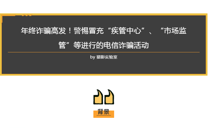 原標(biāo)題:年終詐騙高發(fā)!警惕冒充“疾管中心”“市場(chǎng)監(jiān)管”等進(jìn)行的電信詐騙活動(dòng)