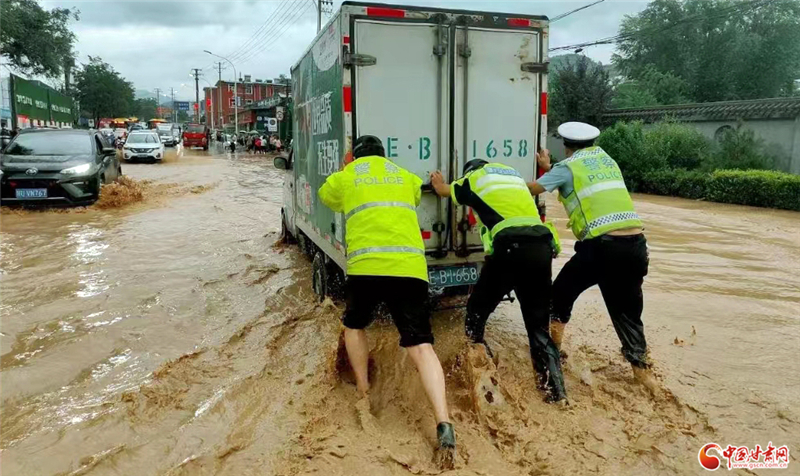 7月15日下午,宕昌縣南河鄉(xiāng)突降暴雨,212國道高橋村路段積水快速上漲,導(dǎo)致三輛微型車輛被困水中。宕昌縣公安局南河派出所接到群眾求助后,會同南河交警中隊在熱心群眾的幫助下,及時對被困車輛和人員進行了救助,同時疏通了排泄口。