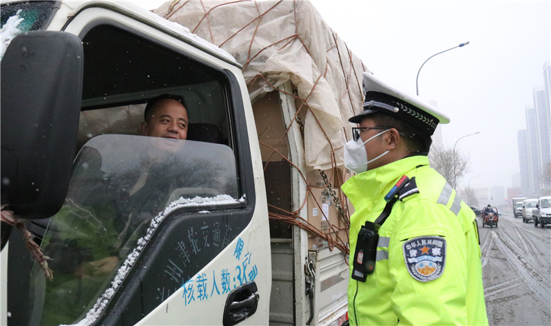 大隊(duì)領(lǐng)導(dǎo)實(shí)地查看道路通行情況,及時(shí)調(diào)整勤務(wù)模式和警力部署,確保降雪天氣各項(xiàng)安全“防控”措施落實(shí)到位。民輔警全員上路,強(qiáng)化重點(diǎn)路段巡邏管控和主要路口值守,對(duì)不具備通行條件車(chē)輛進(jìn)行勸返或提示繞行。通過(guò)鳴笛、喊話、閃爍警燈等措施,提醒駕駛員裝配防滑鏈,減緩車(chē)速、保持安全車(chē)距、注意觀察路面通行情況,引導(dǎo)車(chē)輛和行人安全有序通行。
