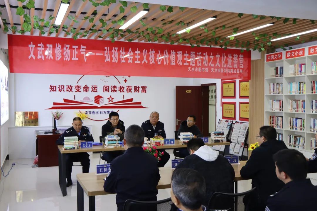 為大力營(yíng)造全體民輔警愛(ài)讀書(shū)、讀好書(shū)、善讀書(shū)的濃厚氛圍,4月24日,在全民讀書(shū)月之際,天水市公安局聯(lián)合市圖書(shū)館在天水強(qiáng)制隔離戒毒所開(kāi)展“全民讀書(shū)月·文化進(jìn)警營(yíng)”活動(dòng)。