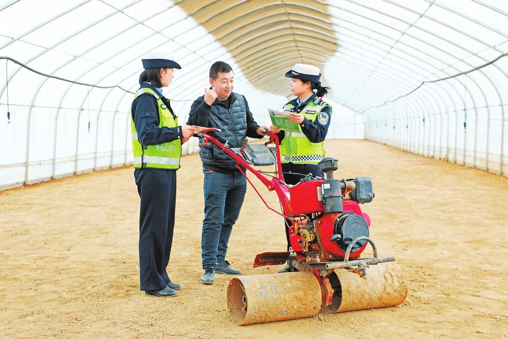 民警向群眾講解交通安全知識。3月6日,定西市公安局安定分局民輔警走進(jìn)田間地頭,開展護(hù)航春耕交通安全宣傳活動,營造安全暢通的道路交通環(huán)境。 新甘肅·甘肅法治報(bào)通訊員楊永剛攝