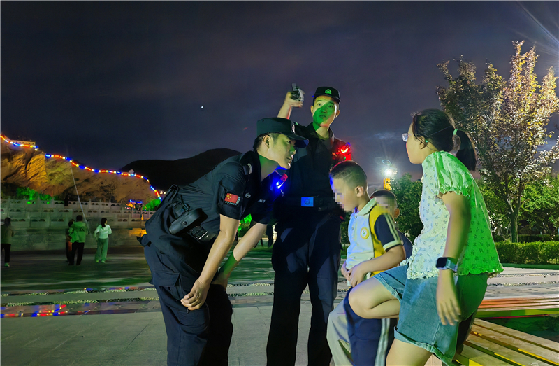“小朋友,天黑了要注意安全,不要靠近湖邊。”特巡警大隊(duì)將公園廣場等群眾休閑聚集區(qū)域作為巡邏防控的重點(diǎn),民輔警在巡邏過程中一邊提醒玩耍的孩童注意安全,一邊向周邊群眾了解治安情況,同時(shí)主動詢問跳廣場舞的群眾是否存在噪音擾民等問題,及時(shí)化解潛在矛盾糾紛。“有你們巡邏,我們帶孩子出來玩都感到很安心!”在公園散步的群眾紛紛表示。