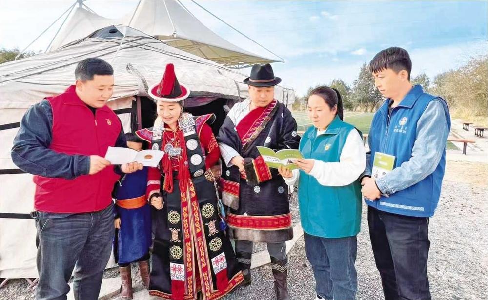 組建由多名文藝骨干組成的“法治烏蘭牧騎”,“法治烏蘭牧騎”文藝團隊先后改編法治主題藝術(shù)作品《馬背交響曲》《不忘初心》等歌曲舞蹈,深入邊境村寨、牧民氈房巡演。創(chuàng)作《法律在身邊》《典亮生活·與法同行》等微視頻,采用線下演出、線上播放的方式,促進法治文化更好地融入社會、融入民眾、融入生活,營造了濃厚的愛國護邊和愛國守法的氛圍。