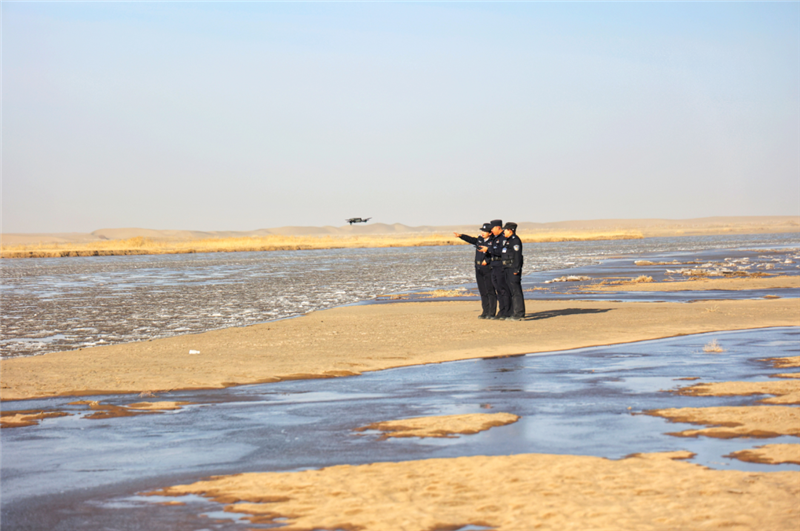 ▲金塔縣公安局城關(guān)派出所民輔警深入轄區(qū)生態(tài)保護(hù)區(qū)開展車巡、步巡、無人機(jī)巡,構(gòu)建起全域覆蓋、空地聯(lián)動、精準(zhǔn)高效的生態(tài)安全防控體系,為織密生態(tài)保護(hù)網(wǎng)保駕護(hù)航。(葛萬譽 攝)