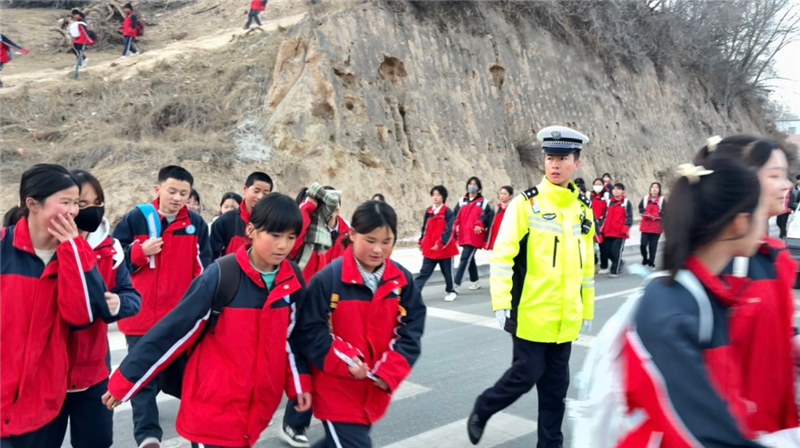 ▲東鄉(xiāng)縣公安局民輔警開展護(hù)學(xué)工作,重點在校園周邊開展交通疏導(dǎo)、清理違停車輛、引導(dǎo)學(xué)生安全過馬路。(完瑪草 攝)