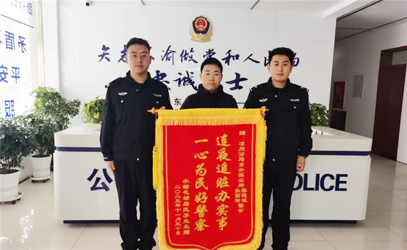 拿到失而復(fù)得的手機(jī),李先生激動(dòng)不已:“真沒(méi)想到你們能連夜幫我找回來(lái),你們太負(fù)責(zé)任了!”隨后,他也送來(lái)一面寫(xiě)有“連夜追贓辦實(shí)事,一心為民好警察”的錦旗,向民輔警的盡心盡責(zé)表達(dá)感謝。